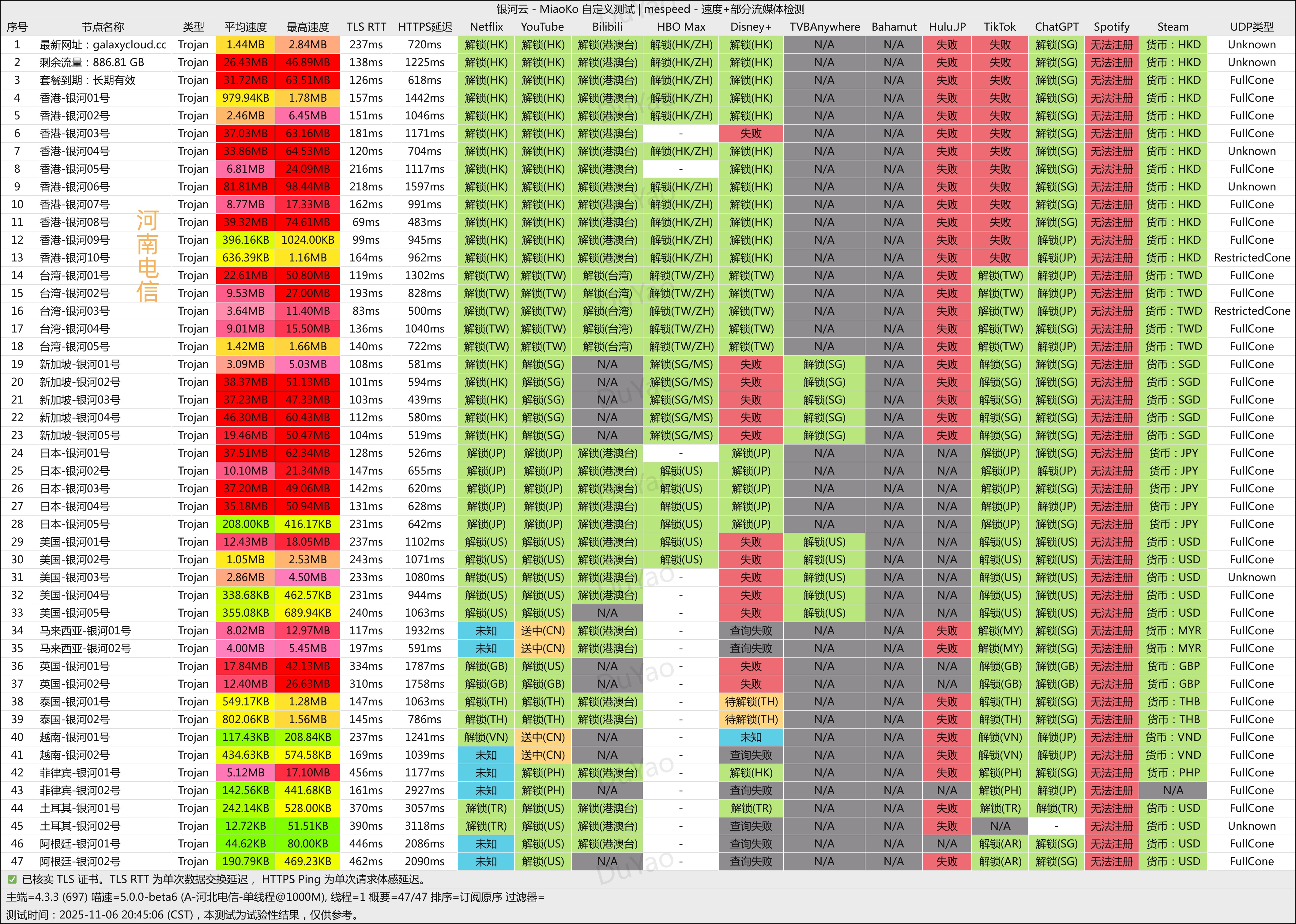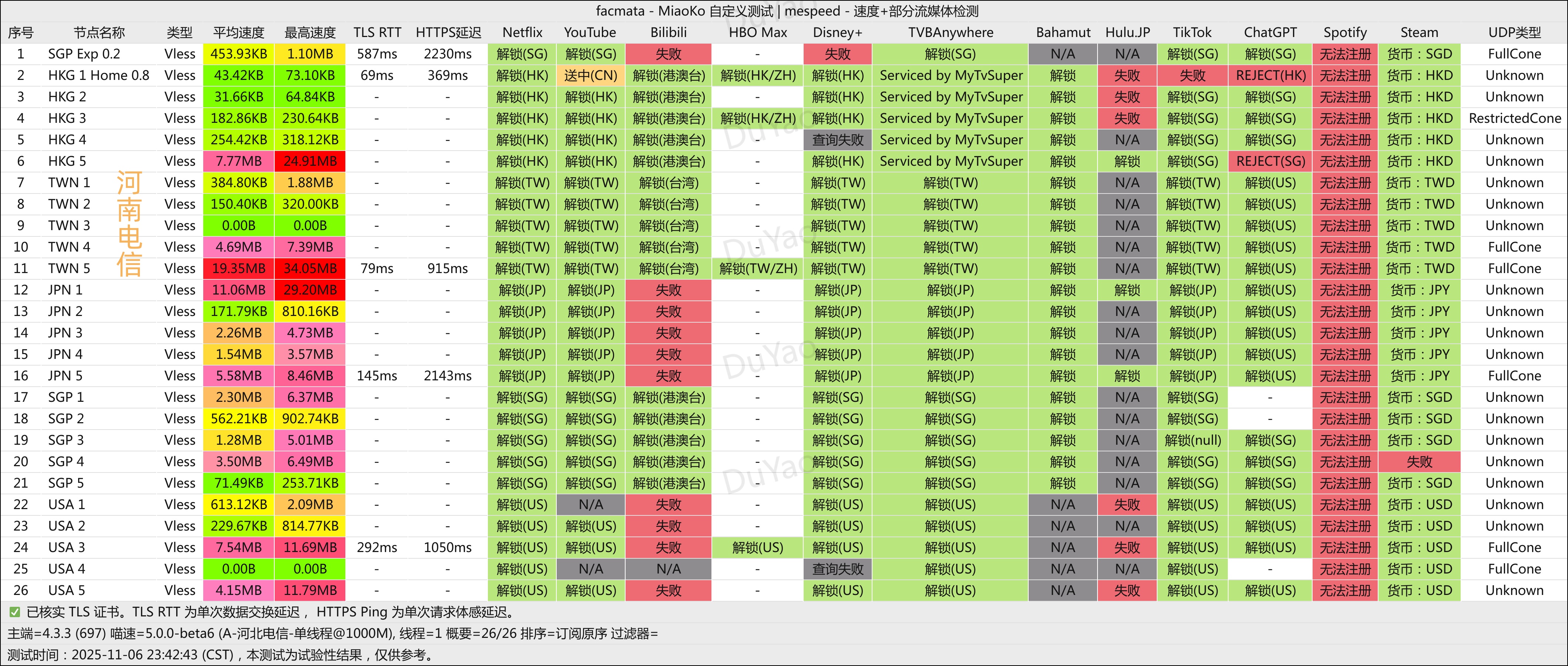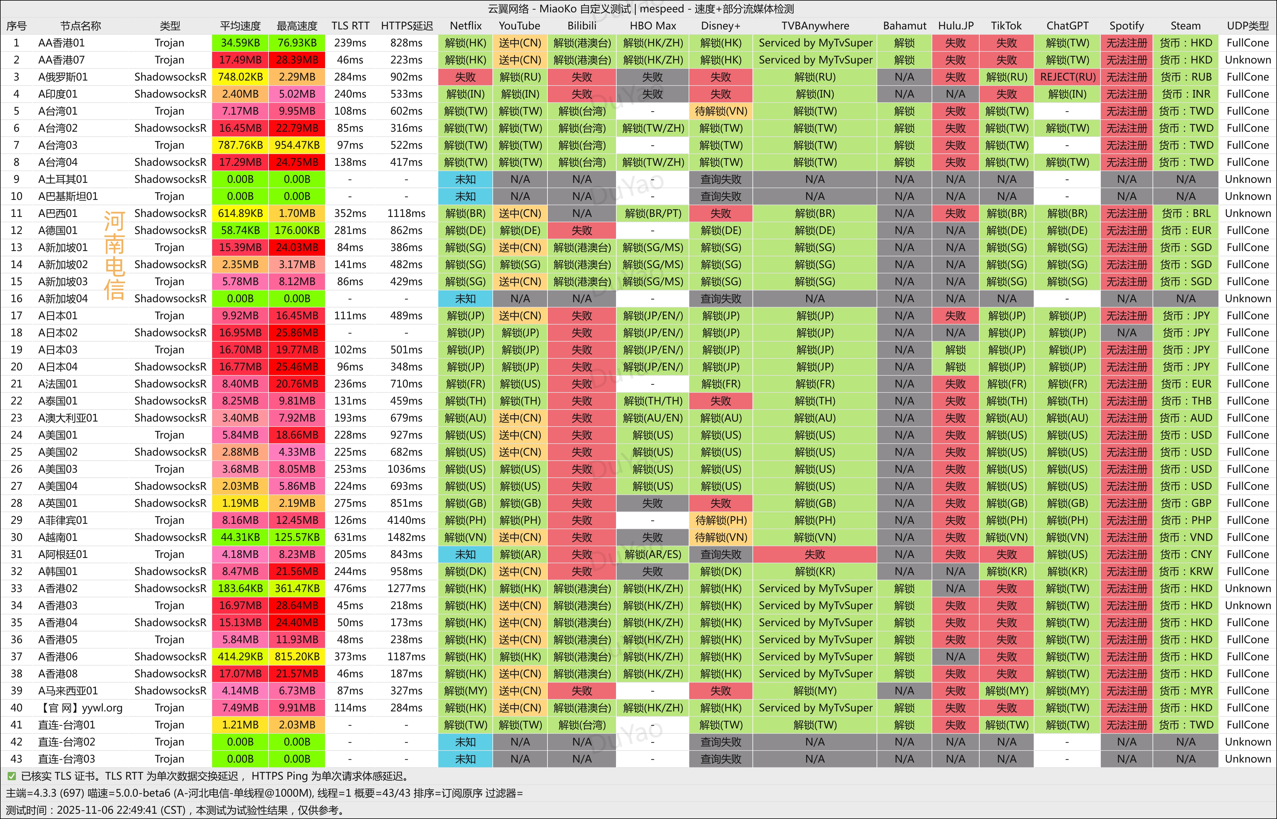 5. 由于大陆地区网络环境十分复杂,不同地区,不同运营商以及不同时间段的测试结果可能存在巨大误差,结果仅供参考