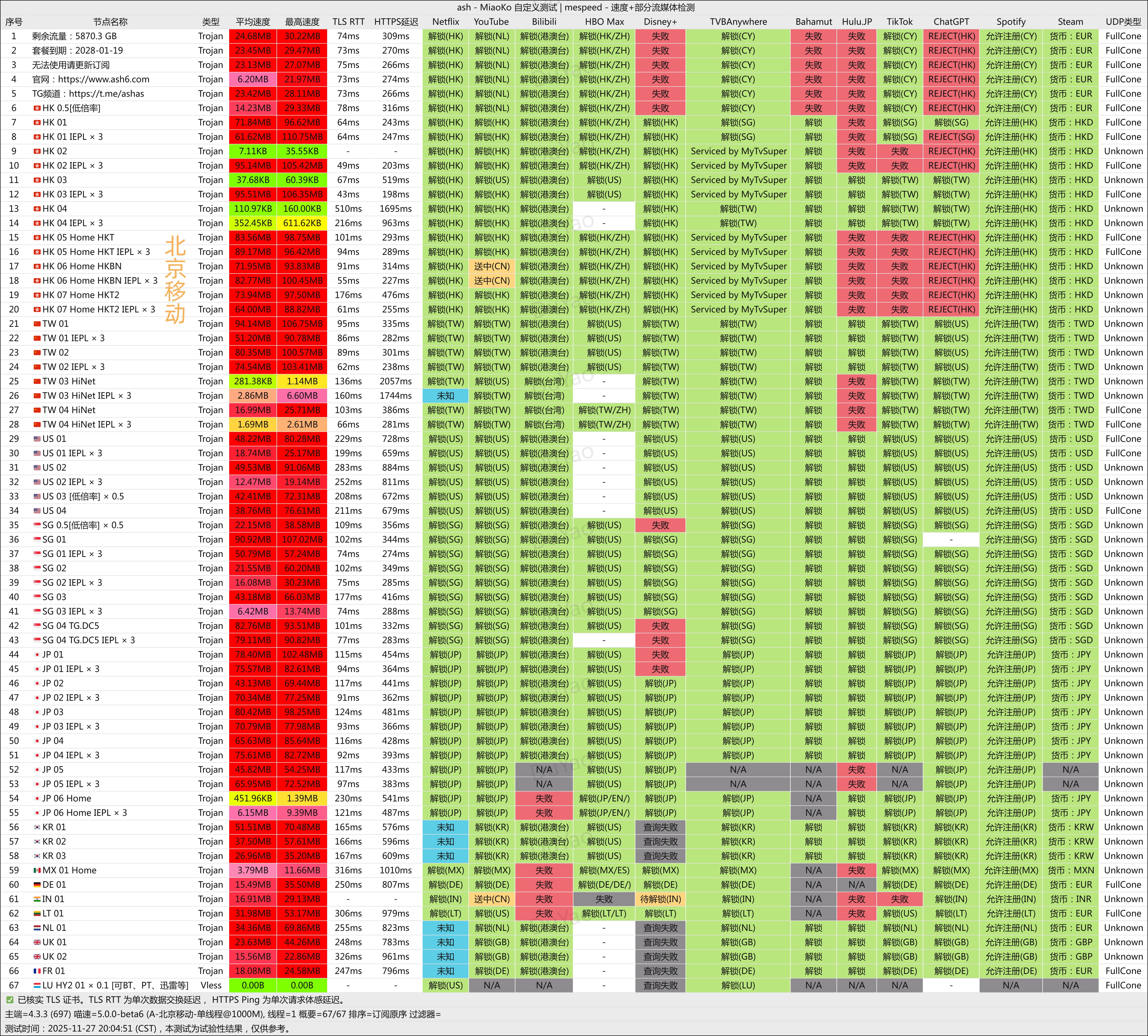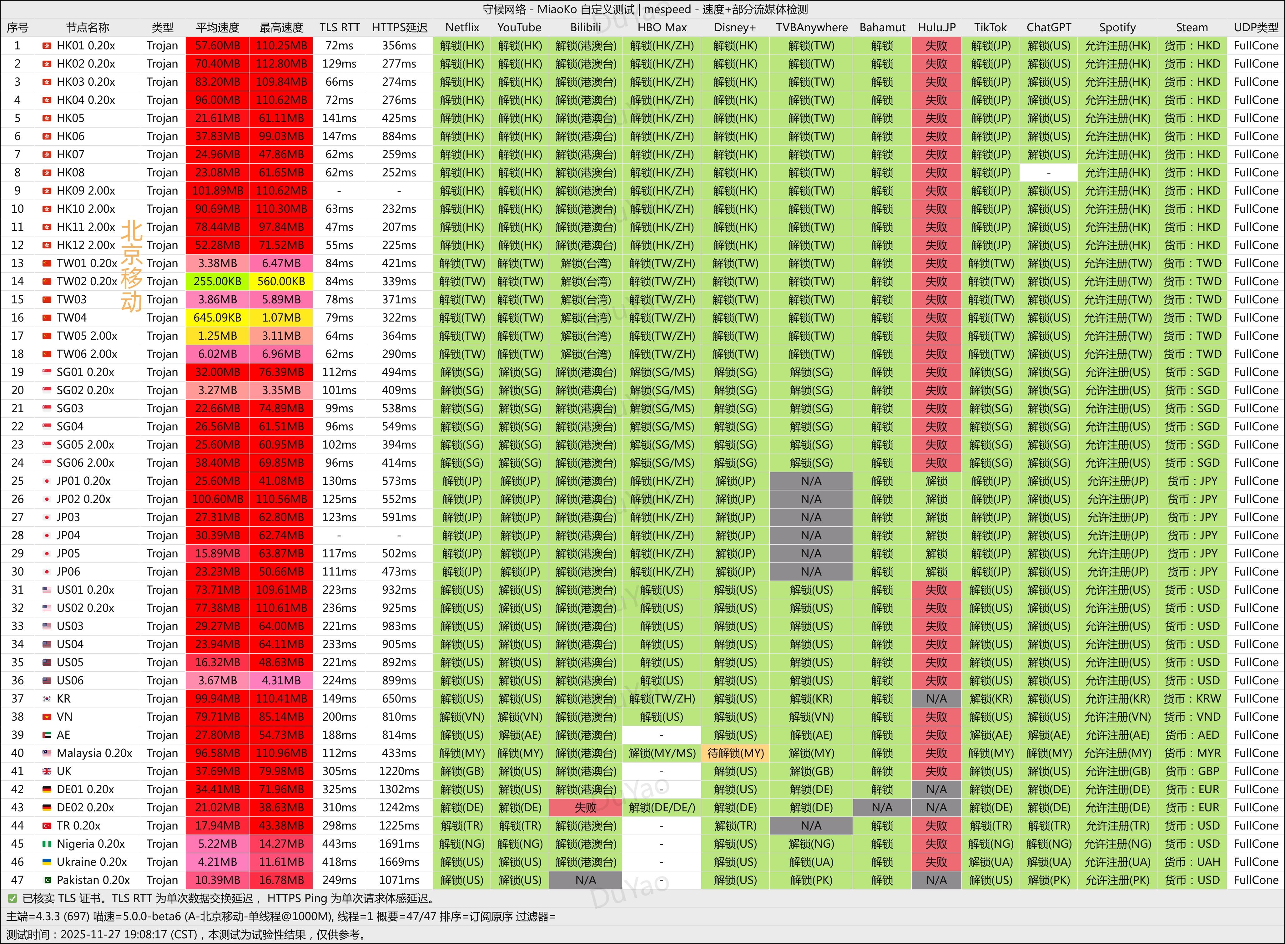 流媒体只能大概参考下,因为有时候封不封 ip 太快了,再加上机场也会自己换。