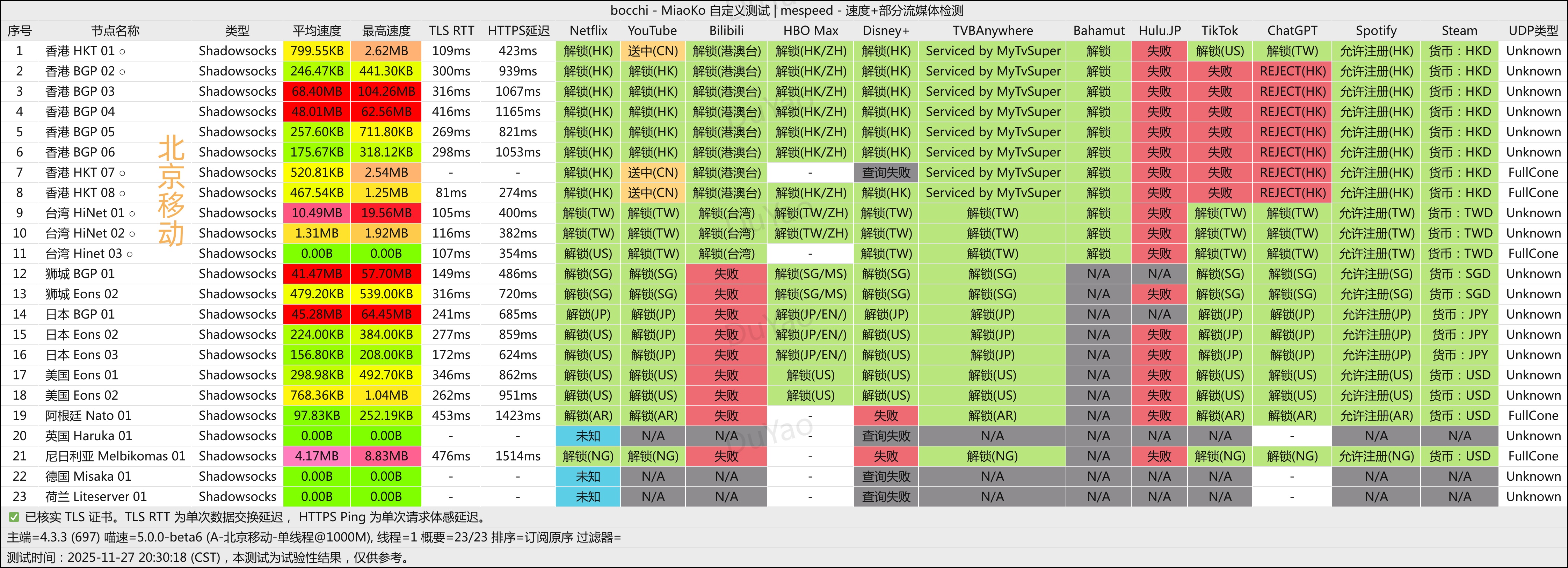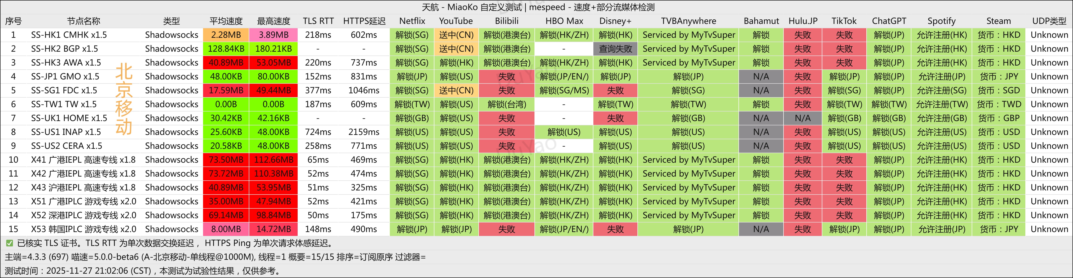 - 由于大陆地区网络环境十分复杂,不同地区,不同运营商以及不同时间段的测试结果可能存在巨大误差,结果仅供参考
