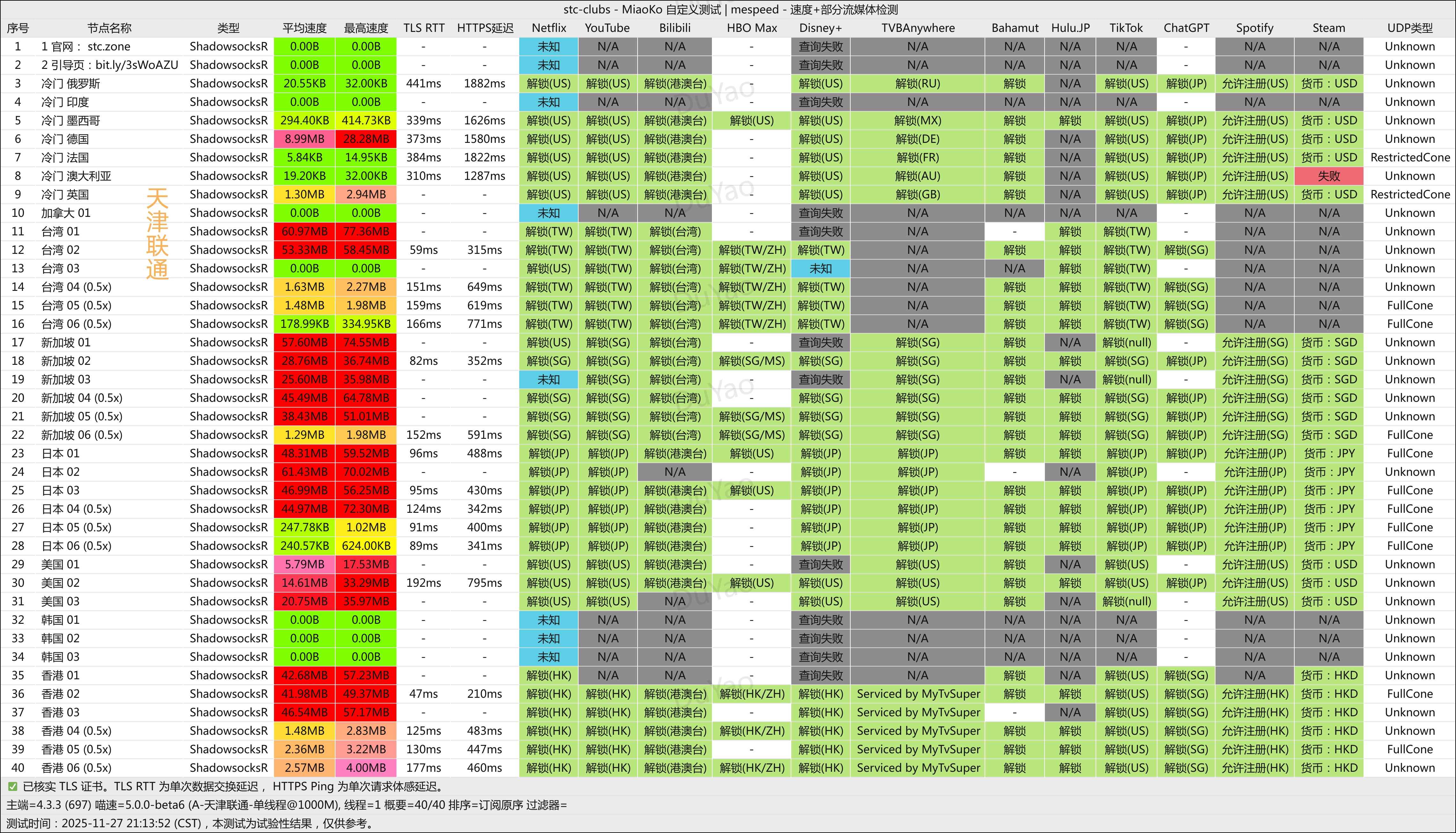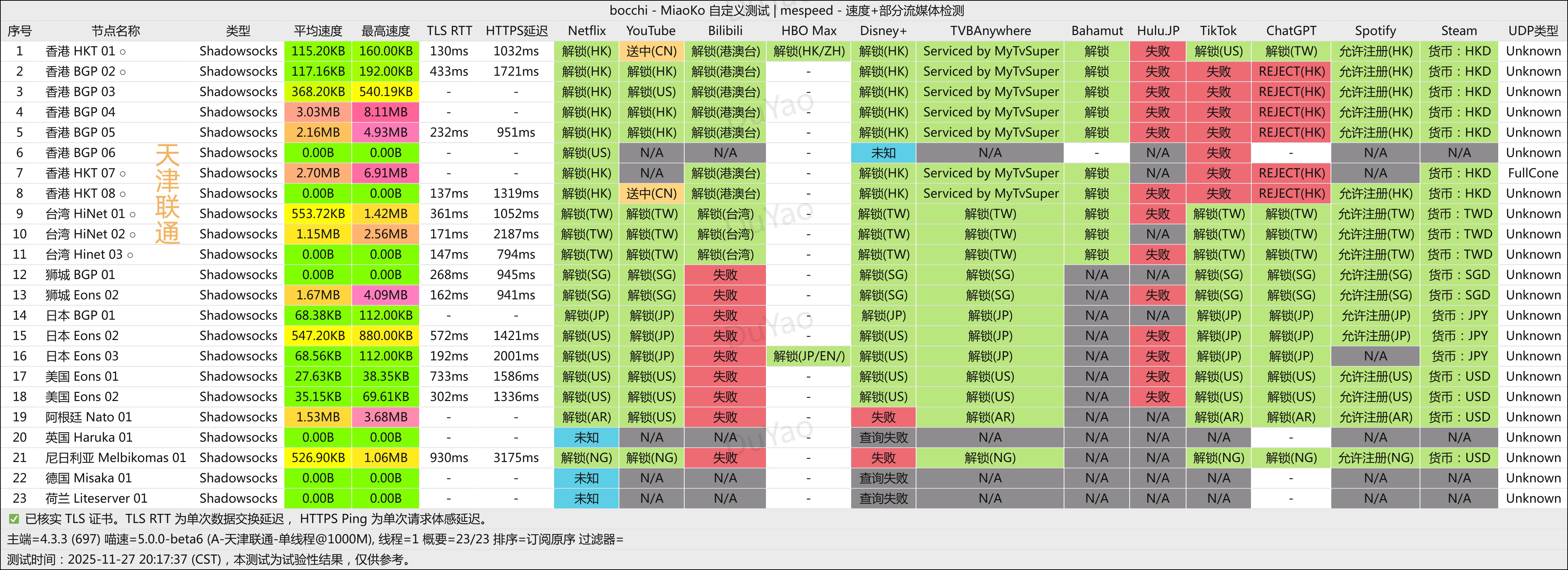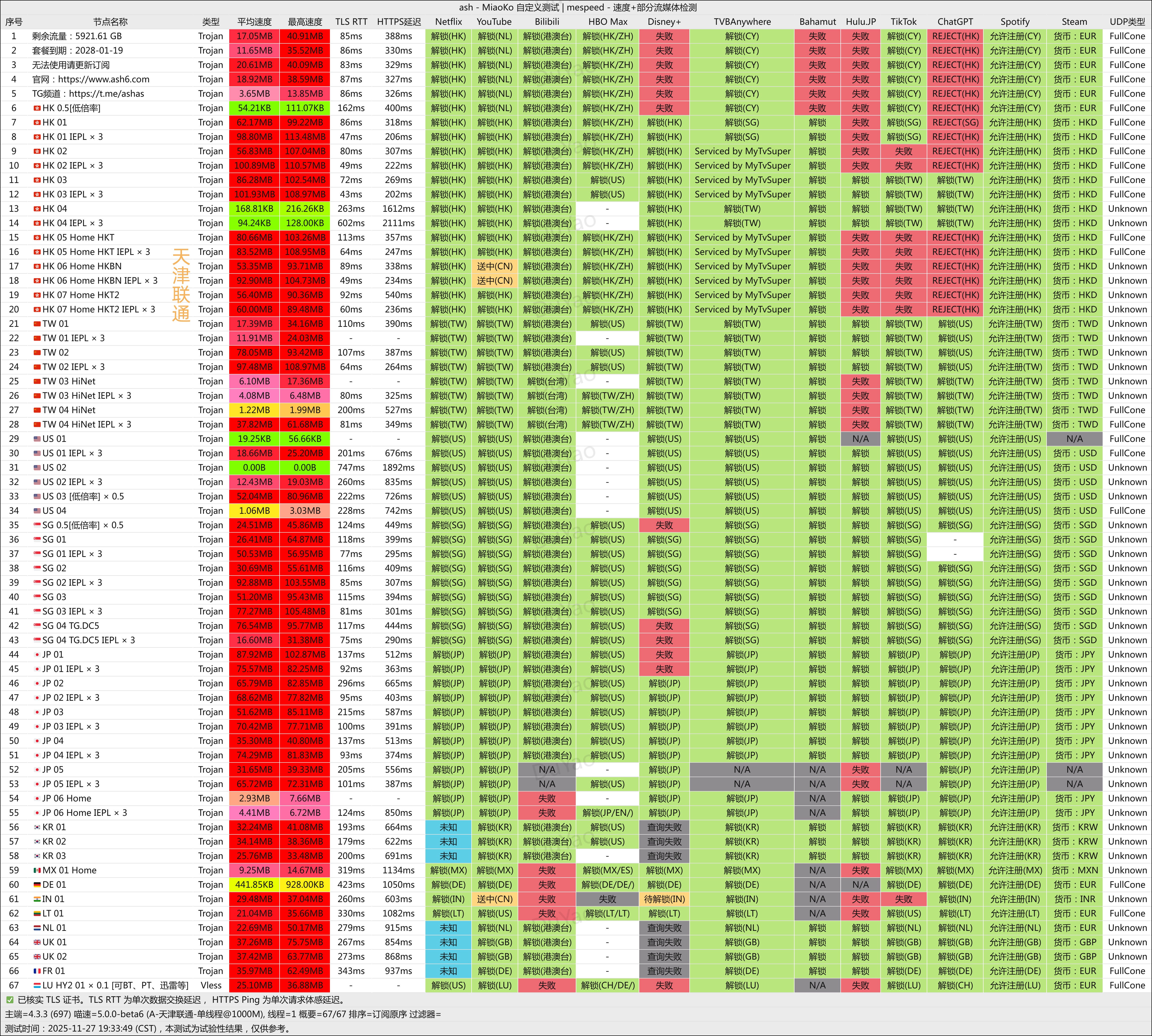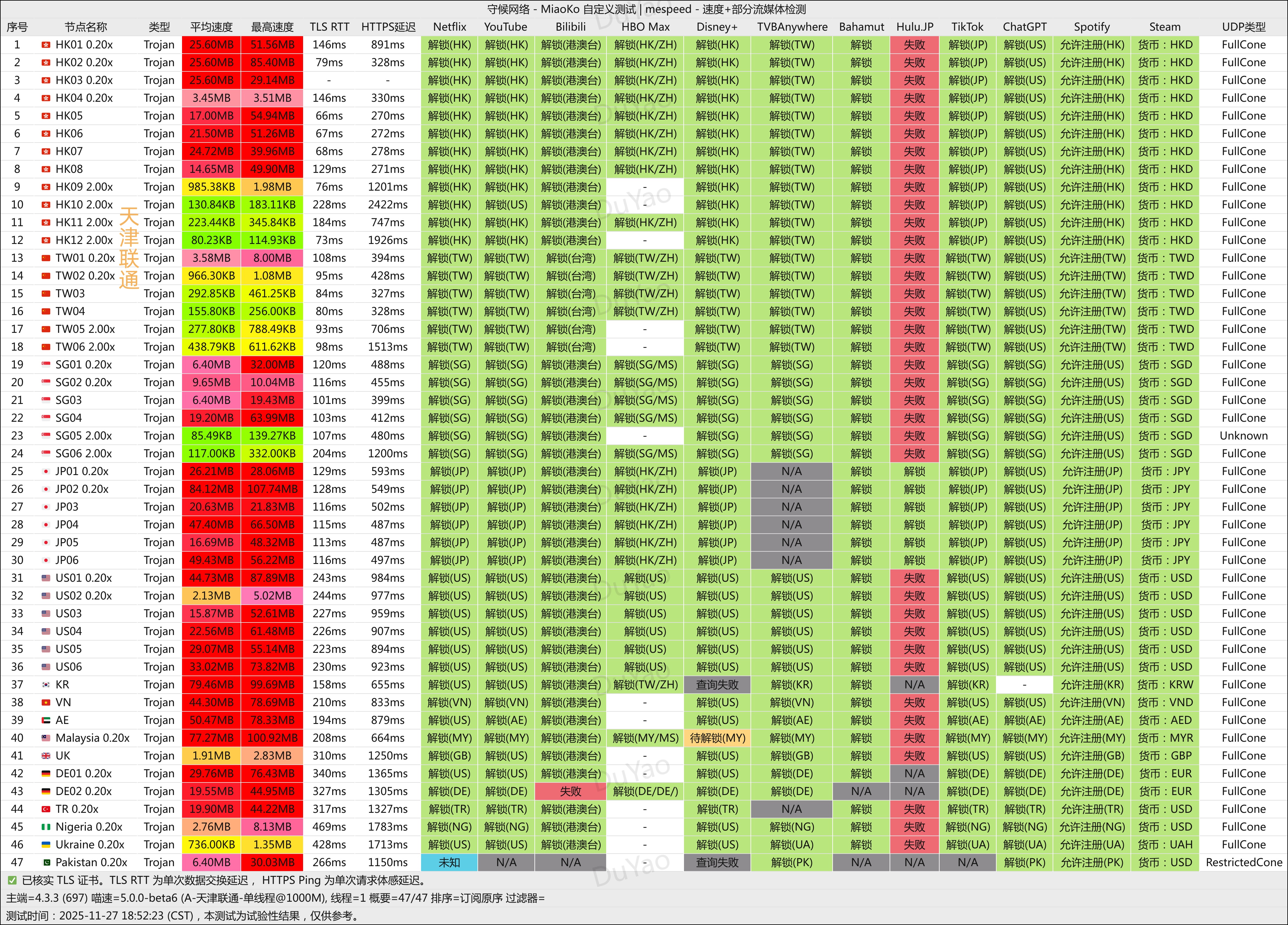 流媒体只能大概参考下,因为有时候封不封 ip 太快了,再加上机场也会自己换。