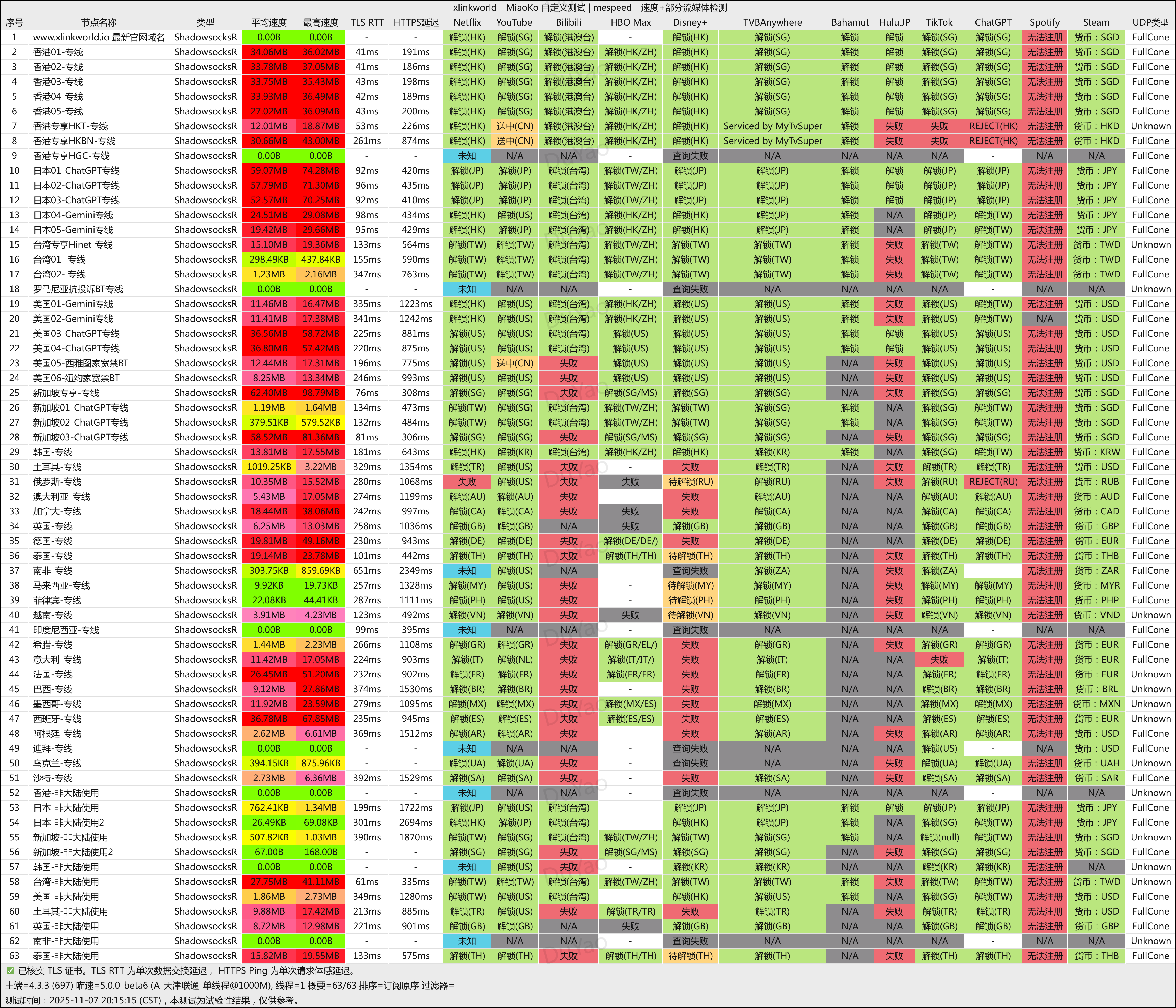 - 由于大陆地区网络环境十分复杂,不同地区,不同运营商以及不同时间段的测试结果可能存在巨大误差,结果仅供参考