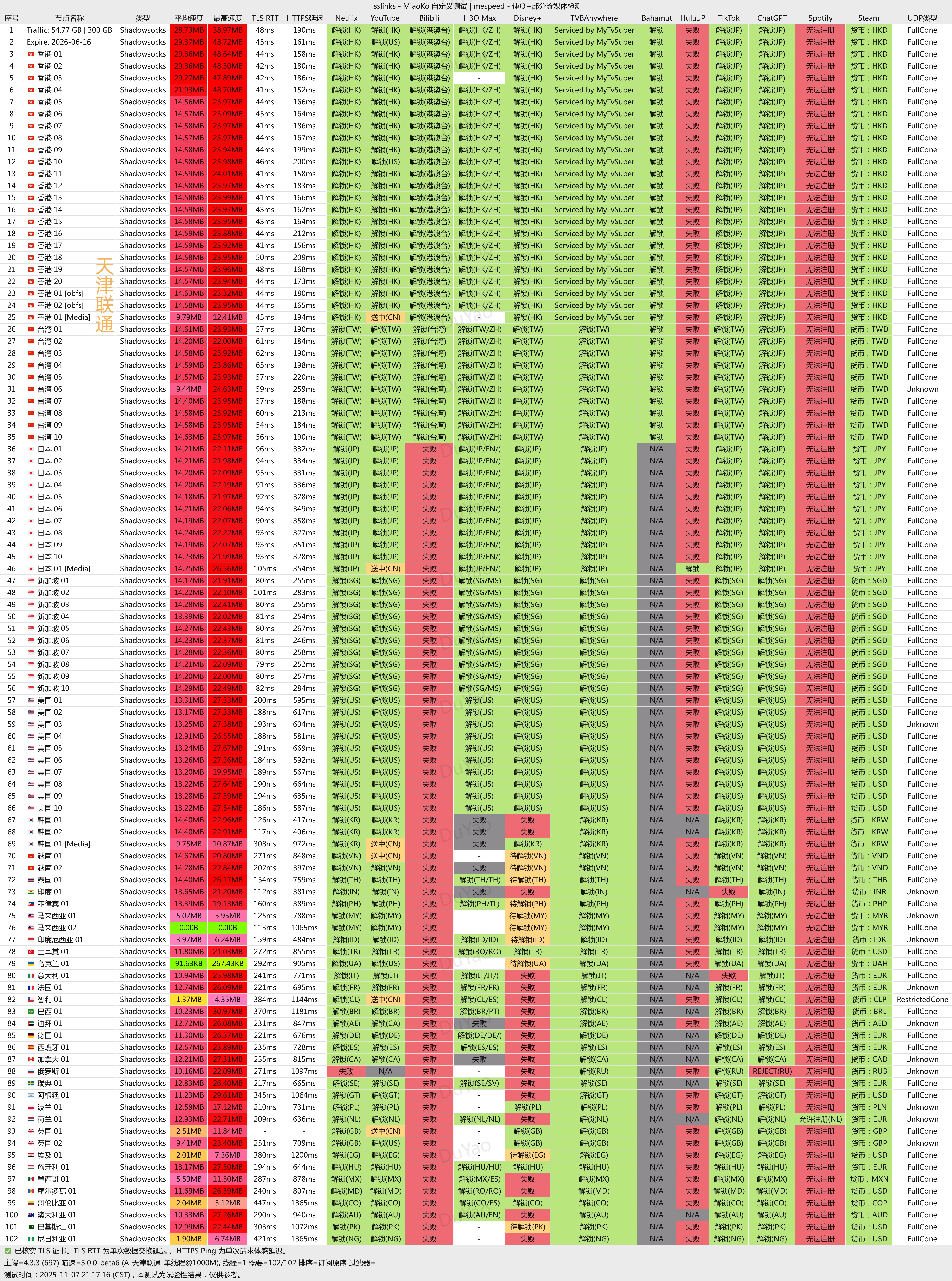 流媒体只能大概参考下,因为有时候封不封 ip 太快了,再加上机场也会自己换。