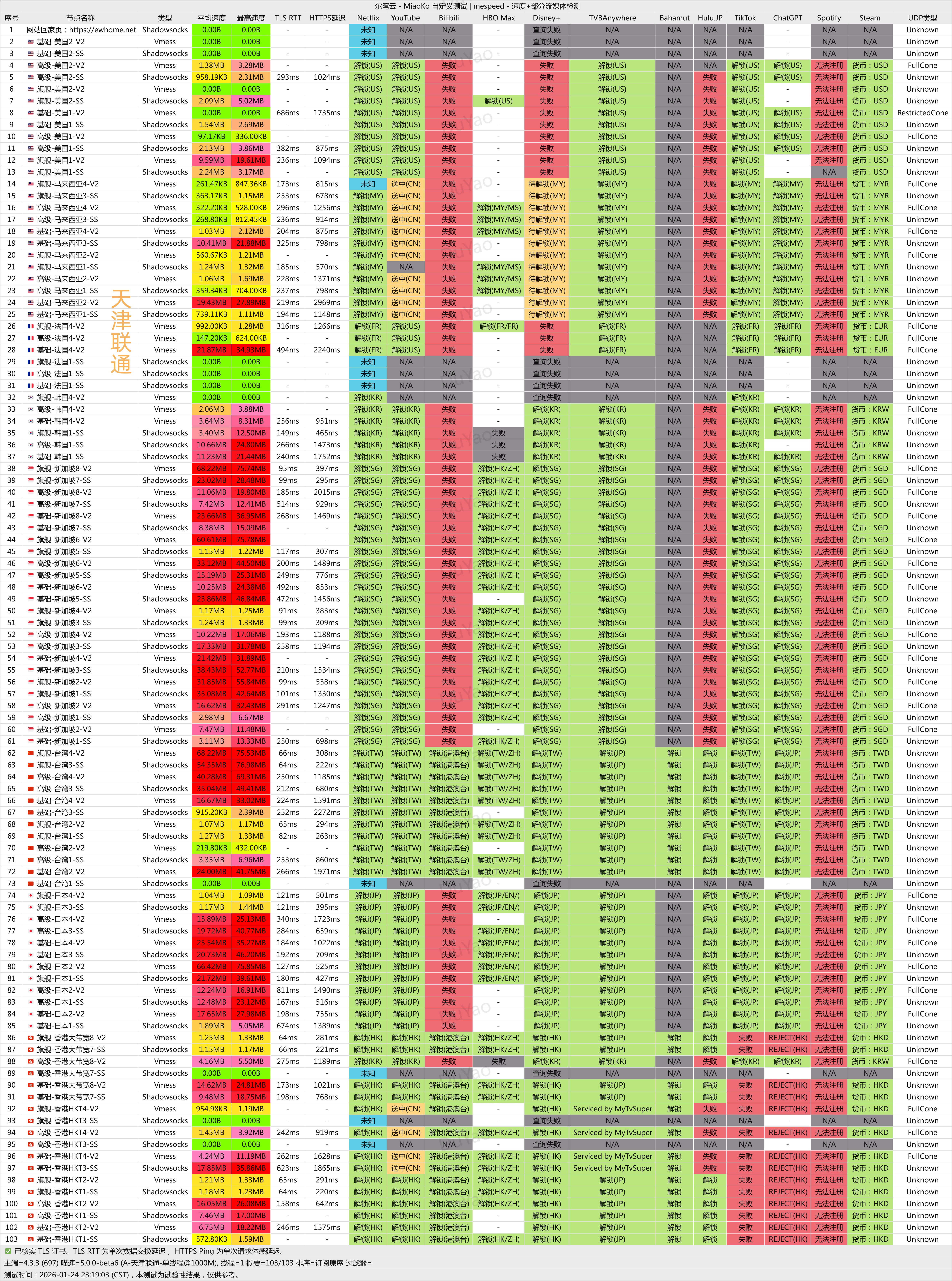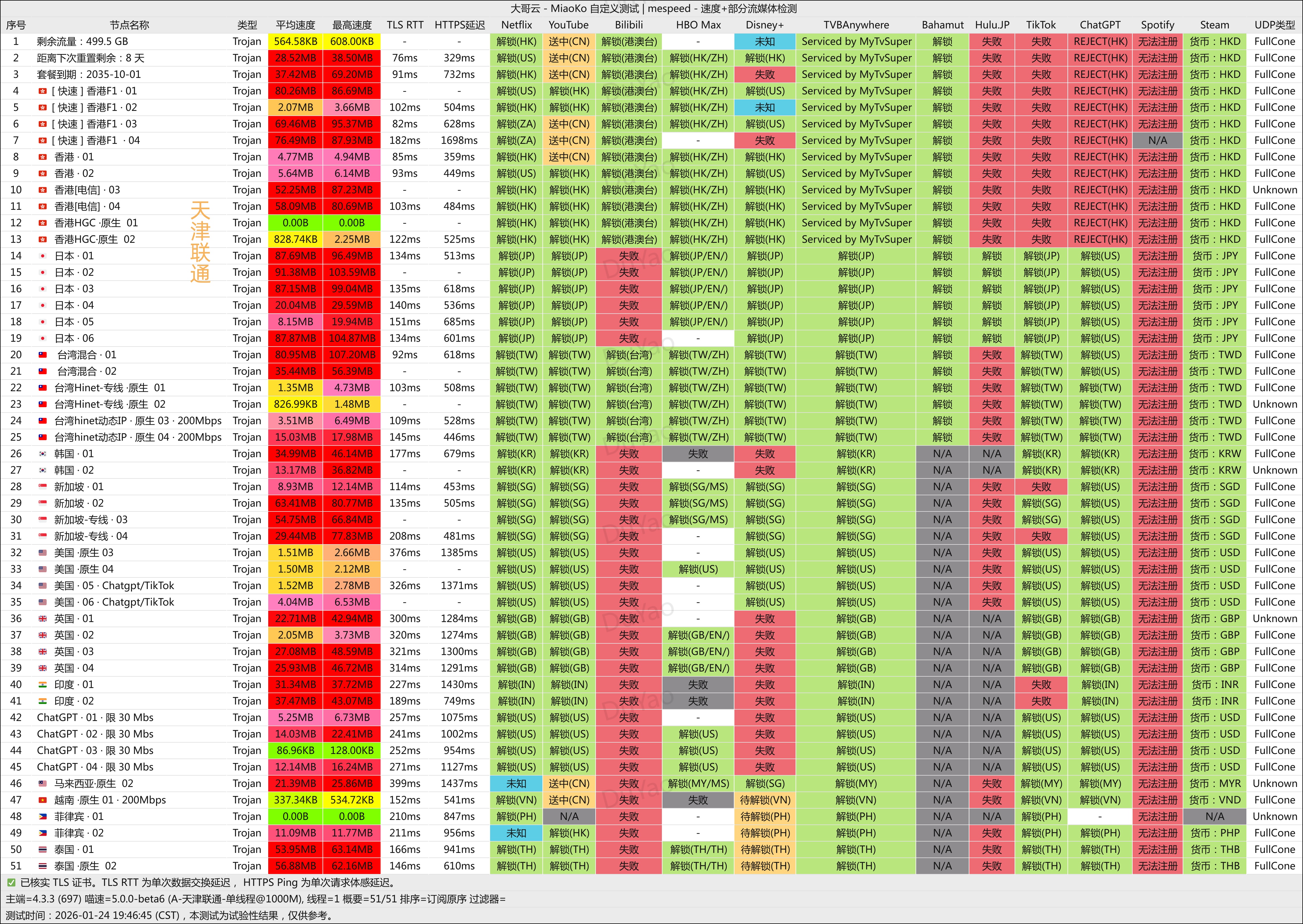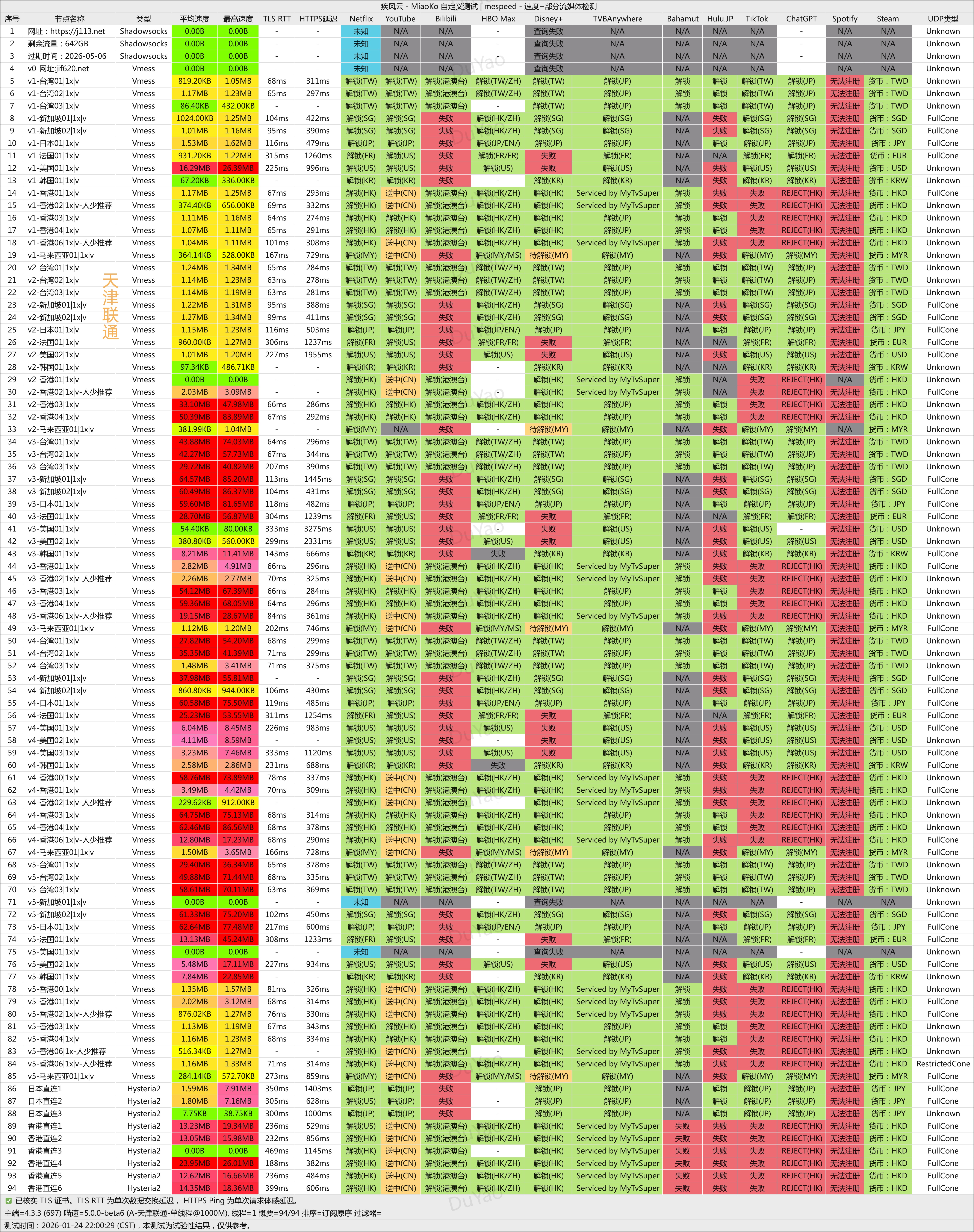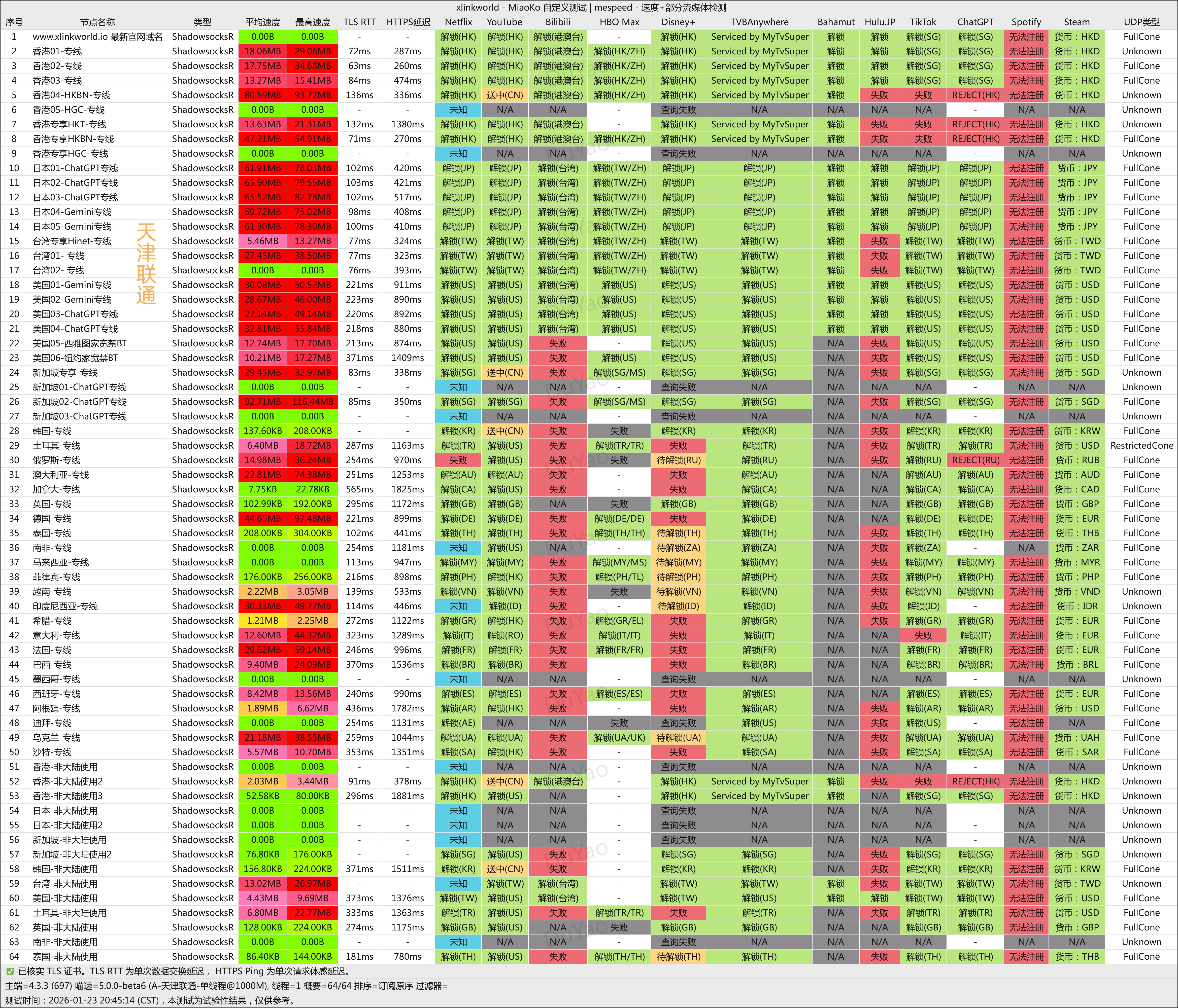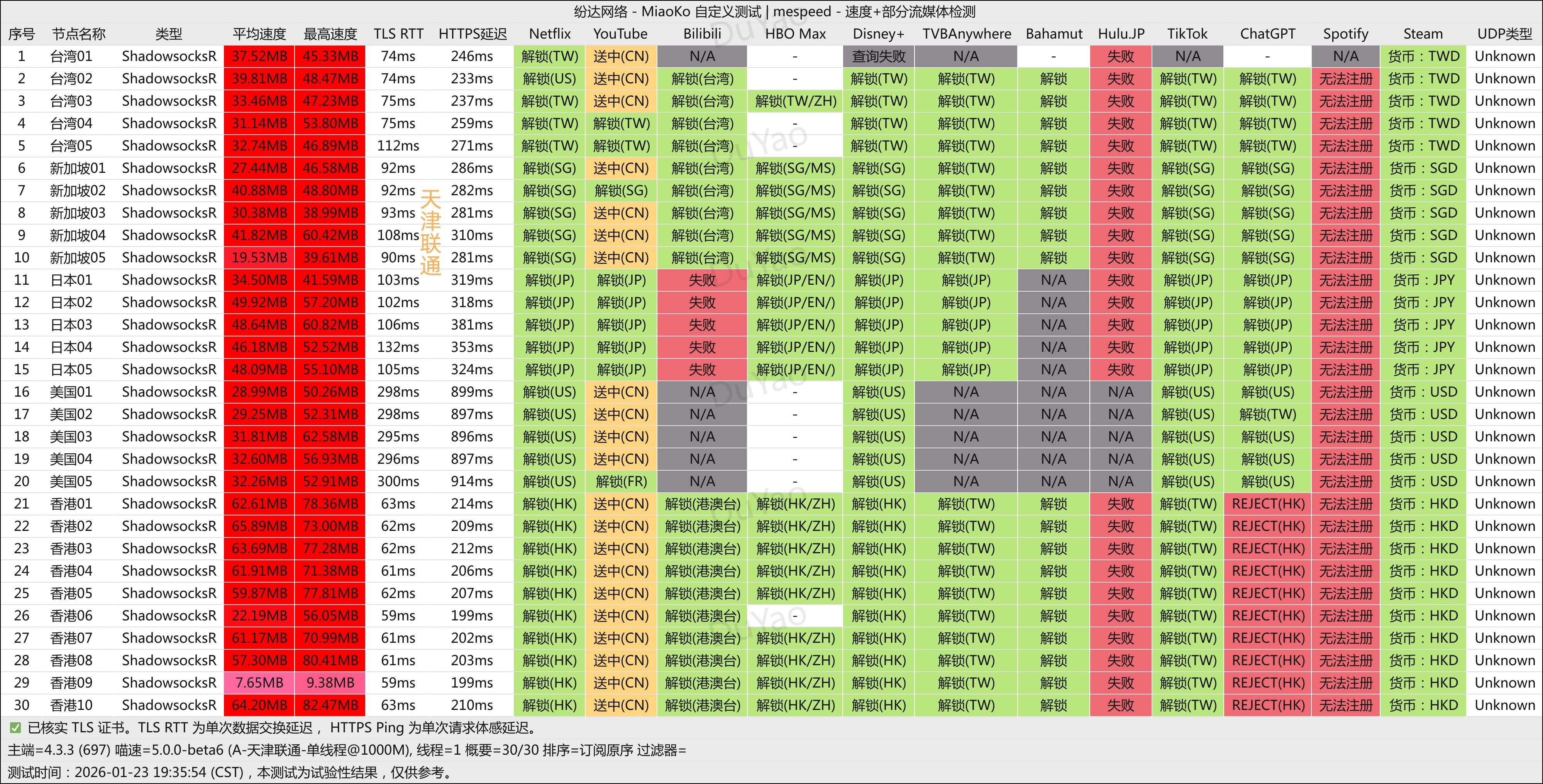 流媒体只能大概参考下,因为有时候封不封 ip 太快了,再加上机场也会自己换。