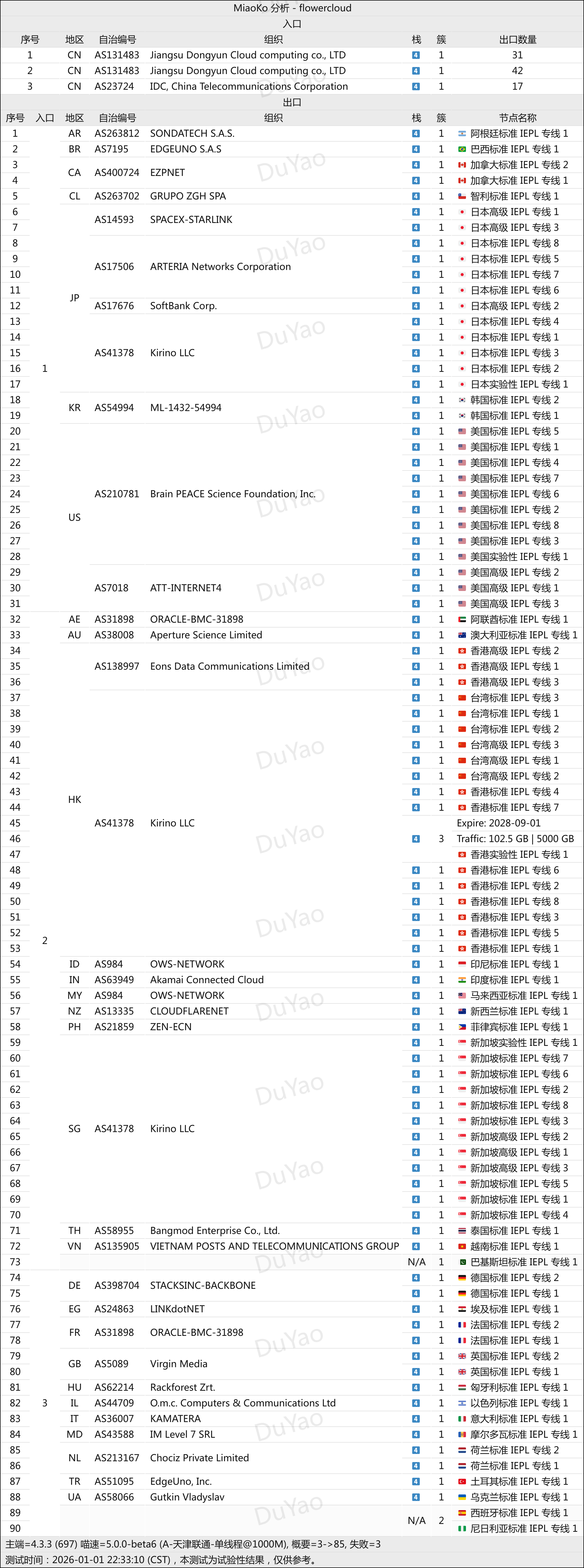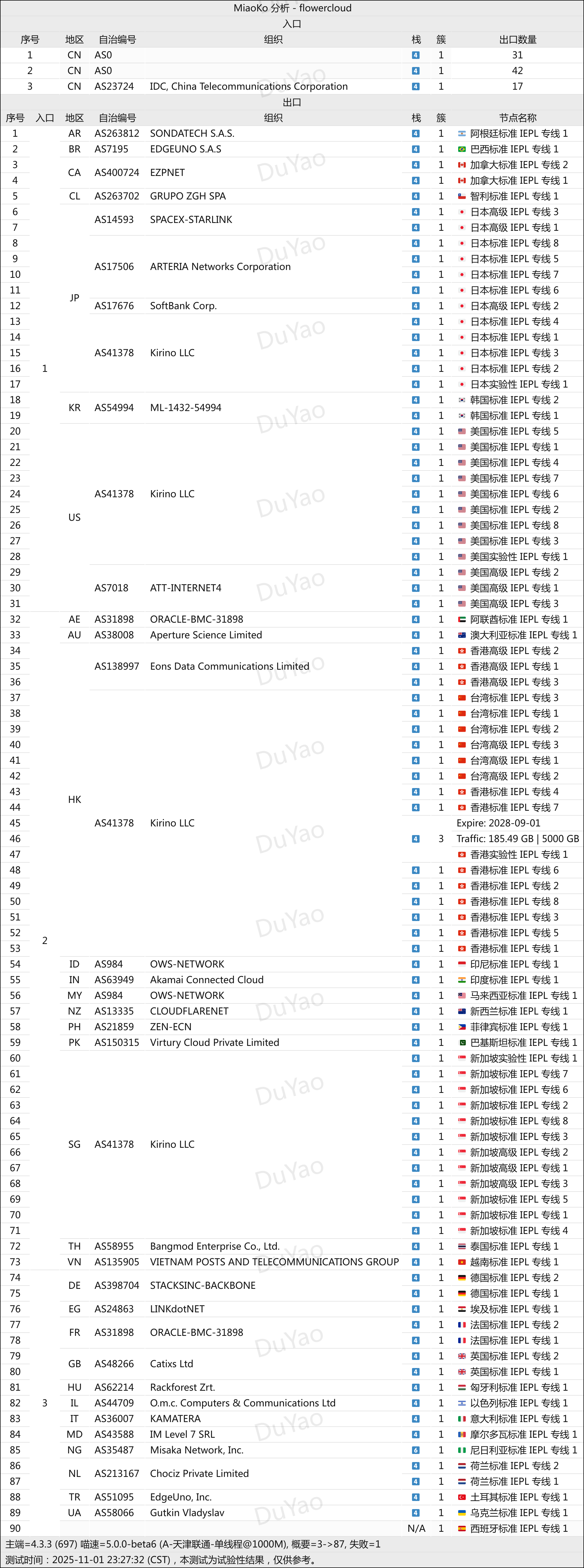 - 落地:Starlink, So-Net, KDDI, AWS, Oracle, Zenlayer, DigitalOcean, Linode等