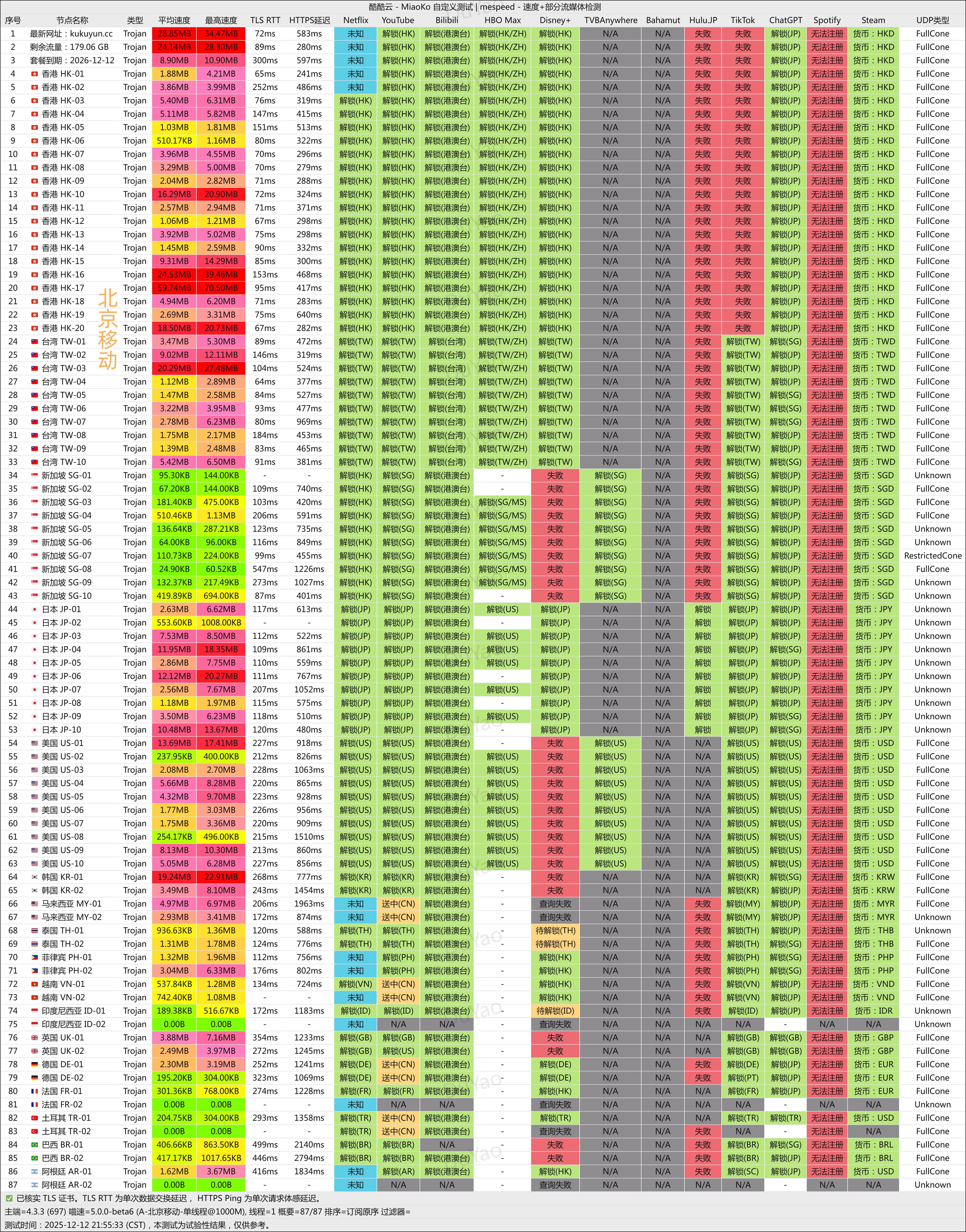 - 由于大陆地区网络环境十分复杂,不同地区,不同运营商以及不同时间段的测试结果可能存在巨大误差,结果仅供参考