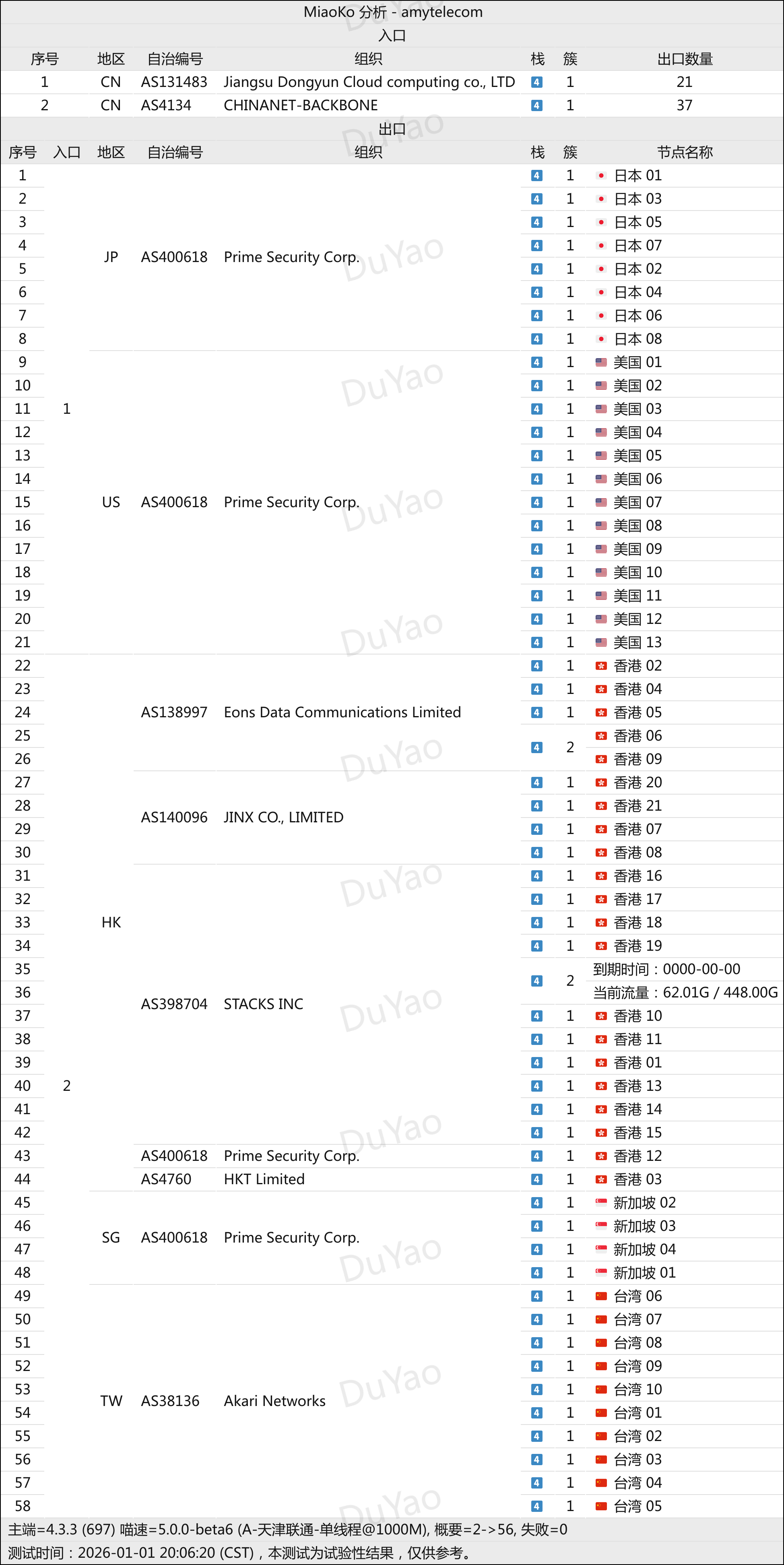 佩奇家分站,上海华为云BGP接入+阿里云深港专线,大概50个左右节点,速度一如既往的好;套餐相比奶昔流量更少但订阅价格也相对便宜一些,轻量版奶昔;已全部更换为Anycast接入,新增华为云入口。
