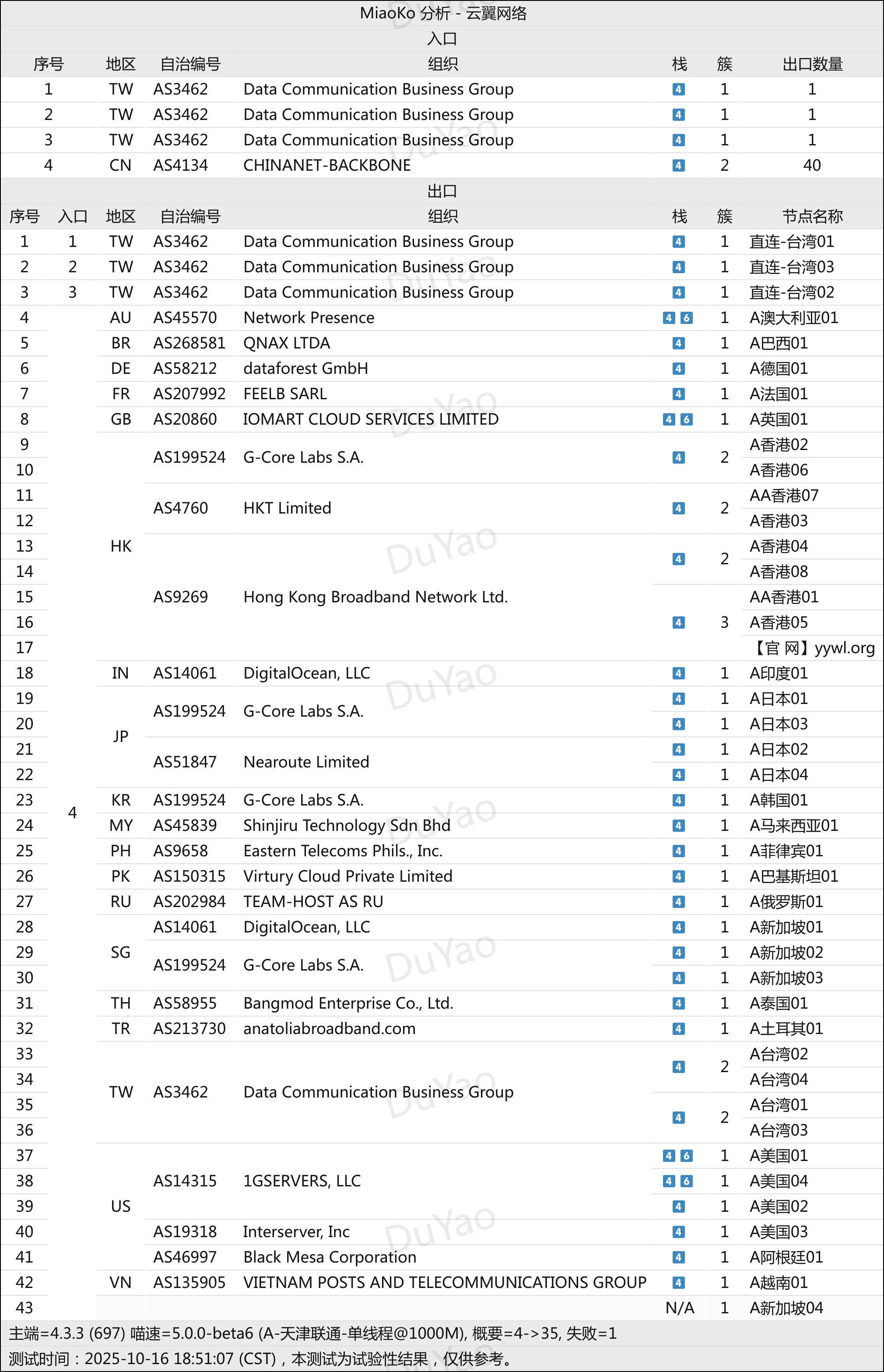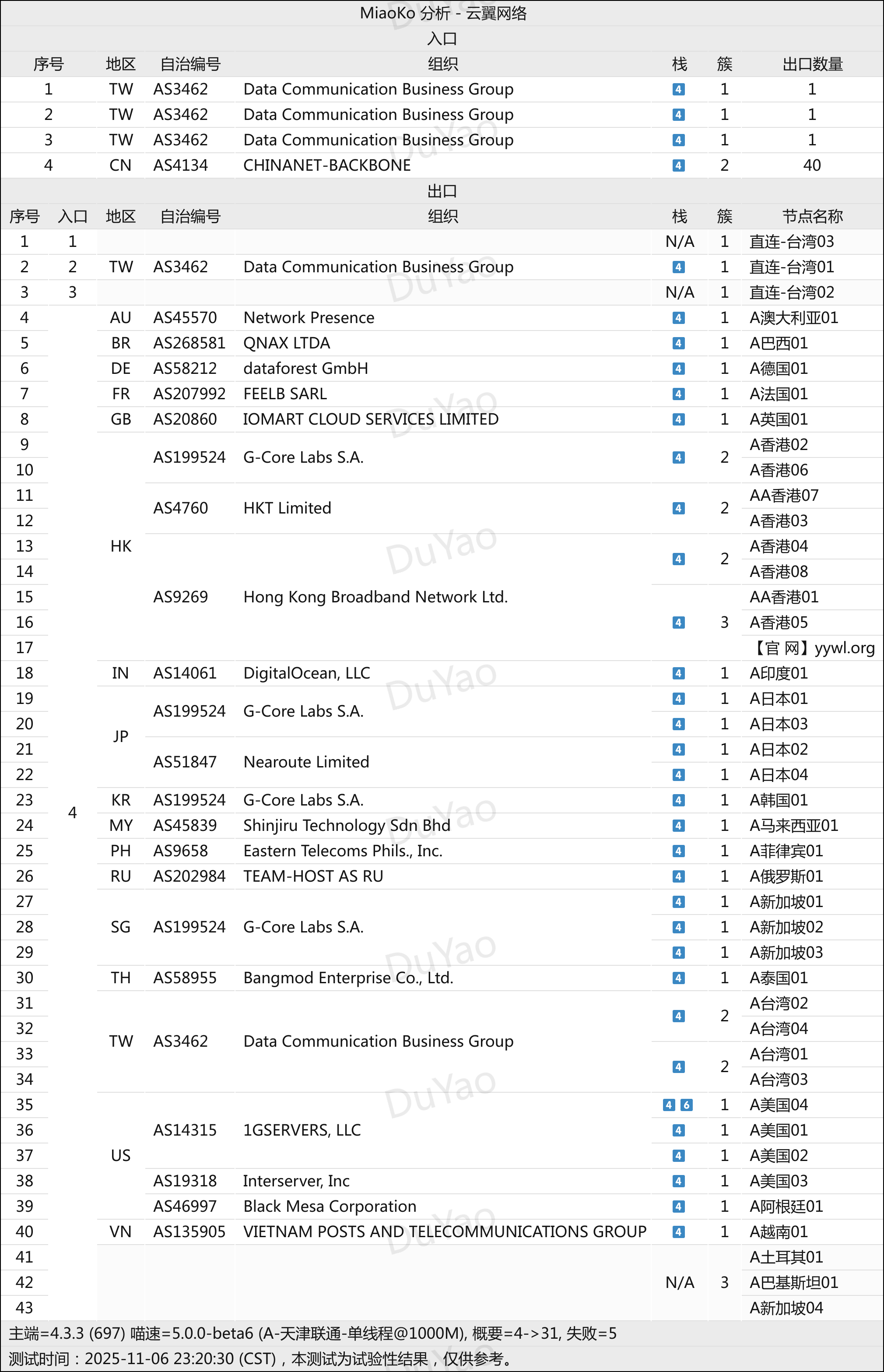 原辉耀网络,之前测过几次速,还不错,主要是移动中转和AZ中转,三个等级线路一样,流量不一样;已更换IEPL线路。